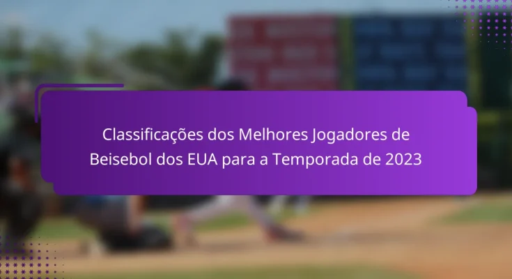 Os principais jogadores nos rankings de beisebol dos EUA de 2023 incluem uma mistura de estrelas estabelecidas e talentos emergentes que demonstraram habilidades excepcionais ao longo da temporada. Esses rankings refletem suas métricas de desempenho, contribuições para suas equipes e impacto geral no jogo.